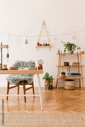 Stylish Scandinavian Home Interior Of Open Space With A Lot Of